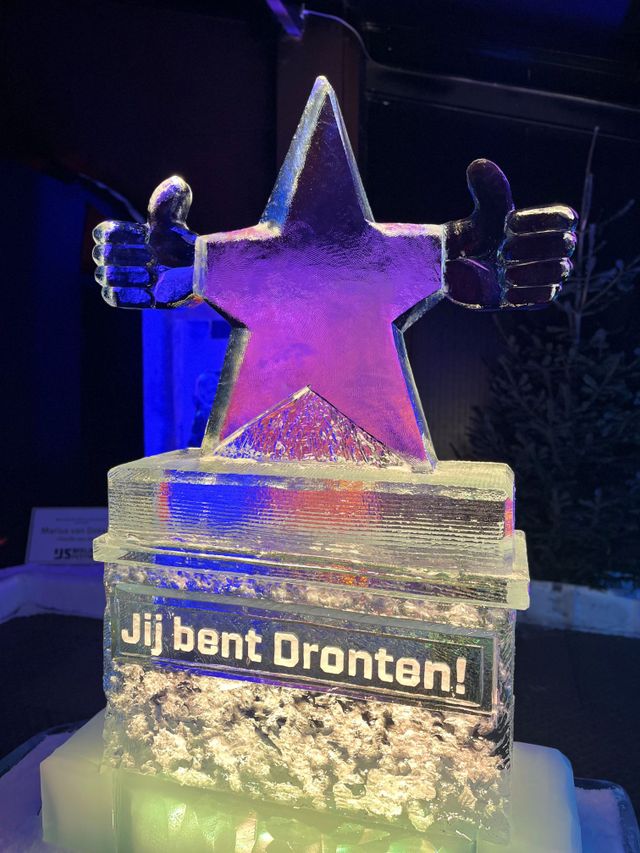 Voor het eerst heeft Dronten een eigen ijssculptuur op het IJsbeelden Festival in Biddinghuizen! Tijdens de tweede editie van dit bijzondere winterse evenement schittert een herkenbaar Dronter beeld tussen de internationale kunstwerken. Het Monument voor Prima Mensen staat symbool voor hoe Dronten groeit en bloeit doordat mensen met lef, samenwerking en optimisme samen bouwen aan de toekomst. Dit Dronter ijsbeeld is een ode aan die energie: samen geven we vorm aan vandaag, met vertrouwen en blik op de toekomst. Deel je foto online en tag @drontengeeftjederuimte.