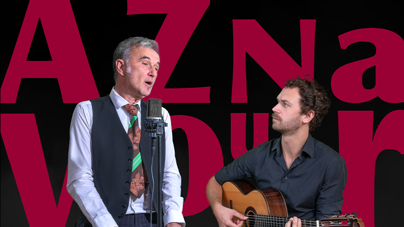 Twee mensen op het podium. Een zanger (een hele goeie!) en een gitarist (een fantastische!). Meer is er niet nodig om dat prachtige repertoire van Charles Aznavour te laten glinsteren en fonkelen.