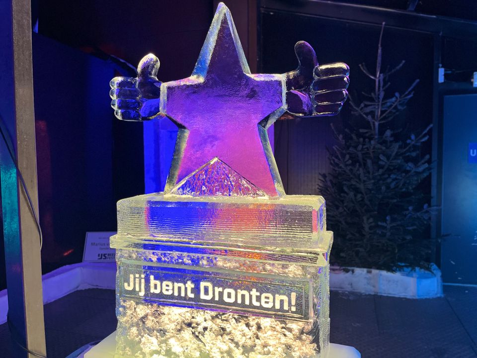 Voor het eerst heeft Dronten een eigen ijssculptuur op het IJsbeelden Festival in Biddinghuizen! Tijdens de tweede editie van dit bijzondere winterse evenement schittert een herkenbaar Dronter beeld tussen de internationale kunstwerken. Het Monument voor Prima Mensen staat symbool voor hoe Dronten groeit en bloeit doordat mensen met lef, samenwerking en optimisme samen bouwen aan de toekomst. Dit Dronter ijsbeeld is een ode aan die energie: samen geven we vorm aan vandaag, met vertrouwen en blik op de toekomst. Dronten, jouw inspiratie voor morgen! Ga jij ook met de duimen omhoog op de foto bij dit beeld? Deel je foto online en tag @drontengeeftjederuimte.