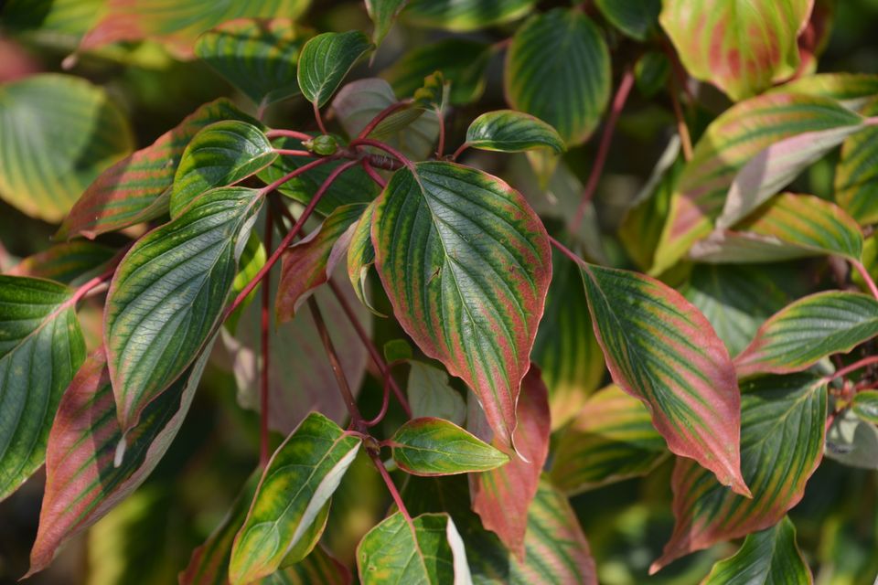 Net als de plataan die we eerder tegenkwamen, krijgt ook het Perzisch ijzerhout op latere leeftijd een stam waarvan de schors in platen loslaat. Dit zorgt voor een mooi patroon van grijze en bruine vlekken op de stam. Een andere naam voor deze boom is vlamboom, en die naam heeft hij te danken aan de prachtige herfstkleuren. Vanaf eind augustus verkleuren de bladeren naar felgeel, oranje en paarsrood.